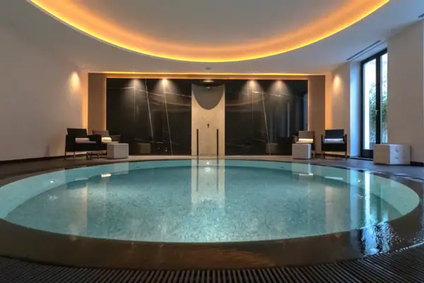 Unser SENSO SPA verfügt über ein beheiztes 30 Grad Relax-Wasserbecken. Das runde Becken mit einer Fläche von 22 m² und einer Wassertiefe von 1,35 m bietet Ihnen genügend Freiraum zur Entspannung und Aktivität. Der Pool liegt im Untergeschoss und bietet einen beruhigenden Blick auf den angrenzenden Saunabereich sowie Zugang zu einem kleinen begrünten Lichthof mit Tageslichteinfall von oben. In der Saunalandschaft erwarten Sie eine Finnische Sauna (ca. 90 Grad), eine Biosauna (ca. 60 Grad), ein Dampfbad (ca. 45 Grad) sowie ein Tepidarium mit beheizten Wärmeliegen (ca. 38 Grad). Darüber hinaus finden Sie in unserem Wellnessbereich einen separaten Ruheraum sowie verschiedene Räumlichkeiten für unsere Wellnessanwendungen wie wohltuende Massagen, pflegende Kosmetikanwendungen oder entspannende Floating-Erlebnisse. Im SENSO SPA verwöhnen wir Sie außerdem gerne mit gesunden, leichten Snacks und erfrischenden Getränken oder Teezeremonien.