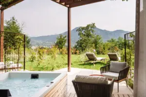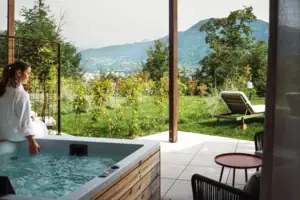 Ein Ort für süße Langsamkeit. Auf Ihrer Terrasse mit privatem Whirlpool und Panoramablick auf die Natur des Gardasees vergeht die Zeit in einem eigenen Rhythmus.