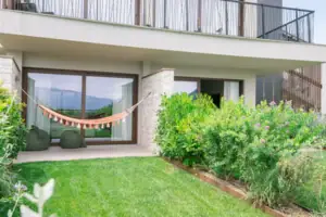 Zwei private Gartenbereiche, Hängematte, Schaukel, Sitzplätze – eine Suite, die zum Bleiben einlädt. Dazu der Blick auf den Gardasee: Urlaubskomfort mit Seele.