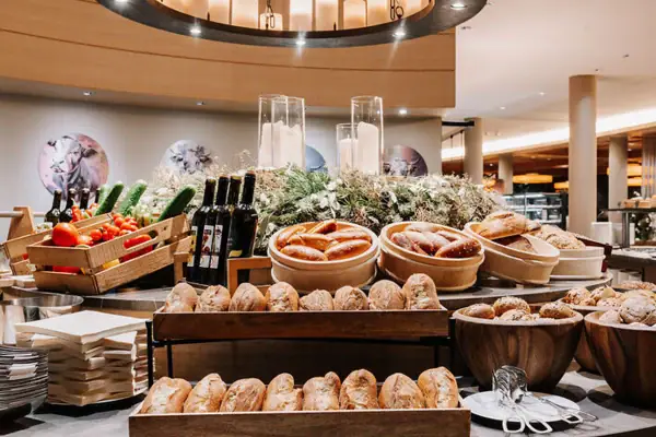 Morgens empfängt Sie der Duft frischer Backwaren und Kaffee. In der Showküche entstehen Eierspeisen nach Wunsch, dazu regionale Wurst- und Käsespezialitäten, fruchtige Konfitüren, frische Früchte und vitaminreiche Säfte – alles mit Liebe und aus der Region. Abends entfaltet sich die ganze Vielfalt der Alpenküche: warme und kalte Köstlichkeiten, feine Vorspeisen, aromatische Hauptgänge und verführerische Desserts. Zubereitet aus besten Produkten aus dem Kleinwalsertal, dem Allgäu und dem Vorarlberger Ländle.