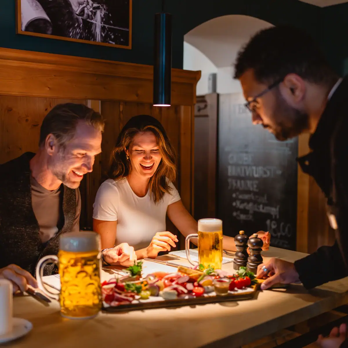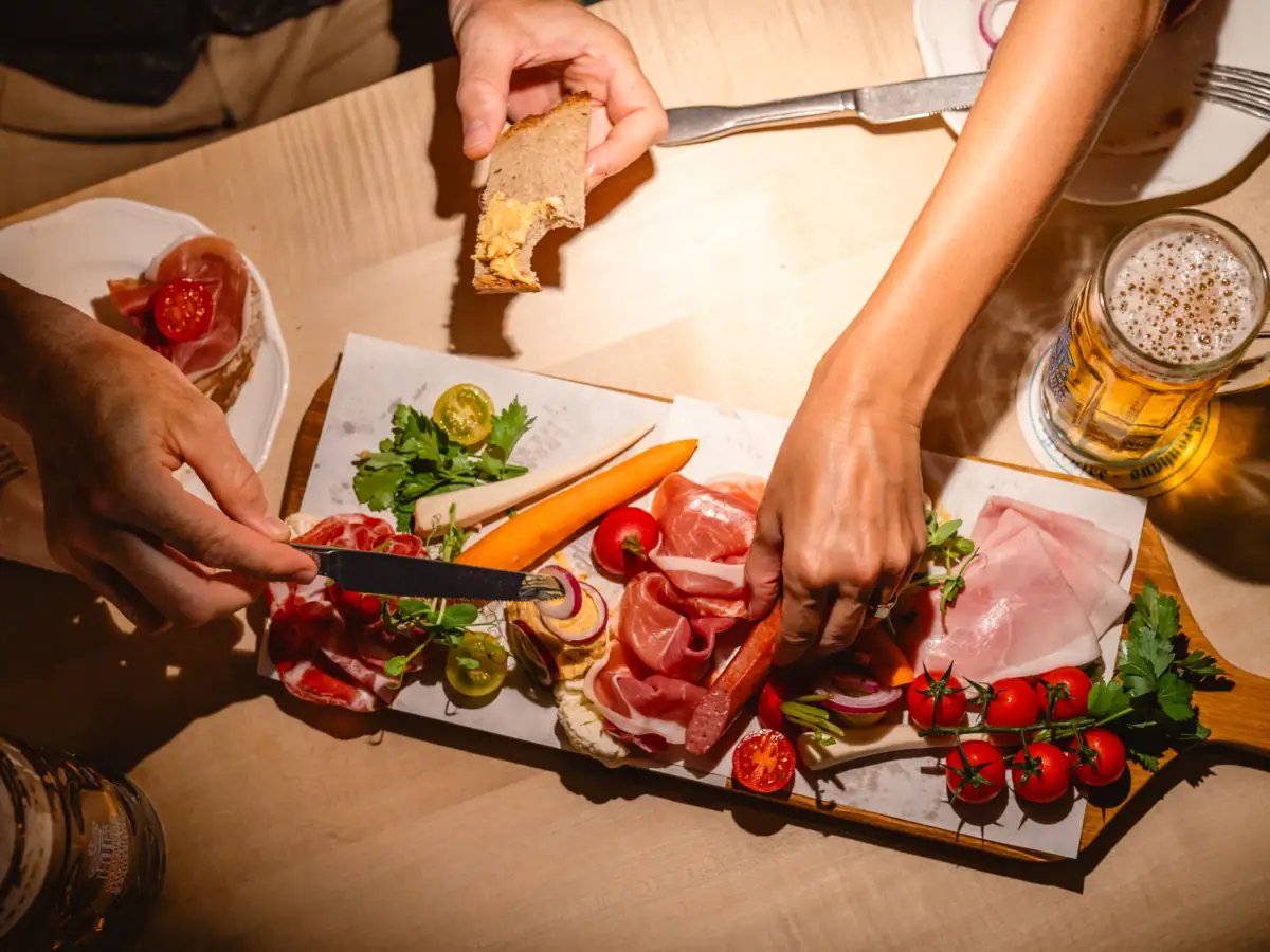 Im Tegernseer Wirtshaus [&] Biergarten wird es herzhaft, gemütlich und ein kleines bisschen alpin. Unsere Küche serviert alles, was man an einem bayerischen Wirtshaus liebt: resche Haxn, warmen Leberkäs, duftendes Biersaftgulasch, zartes Rumpsteak und ein Schmankerlbrettl, das man gerne teilt oder einfach selbst genießt. Dazu kommen feine Suppen, frischer Fisch und Tegernseer Bierspezialitäten, die zum Meer passen wie die Sonne zum Sommerabend. Hier sitzt man, probiert sich durch und merkt irgendwann, dass man eigentlich längst angekommen ist.