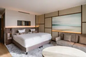 Die Zimmer und Suiten in unserem exklusiven Hotel auf Sylt sind Rückzugsorte voller Ruhe, Lebensfreude und Erholung. 177 stilvoll eingerichtete Räume, darunter 77 frisch renovierte Zimmer, laden dazu ein, sich vom ersten Moment an wohlzufühlen – mit Blick auf das Meer oder über die malerische Dünenlandschaft von Sylt.